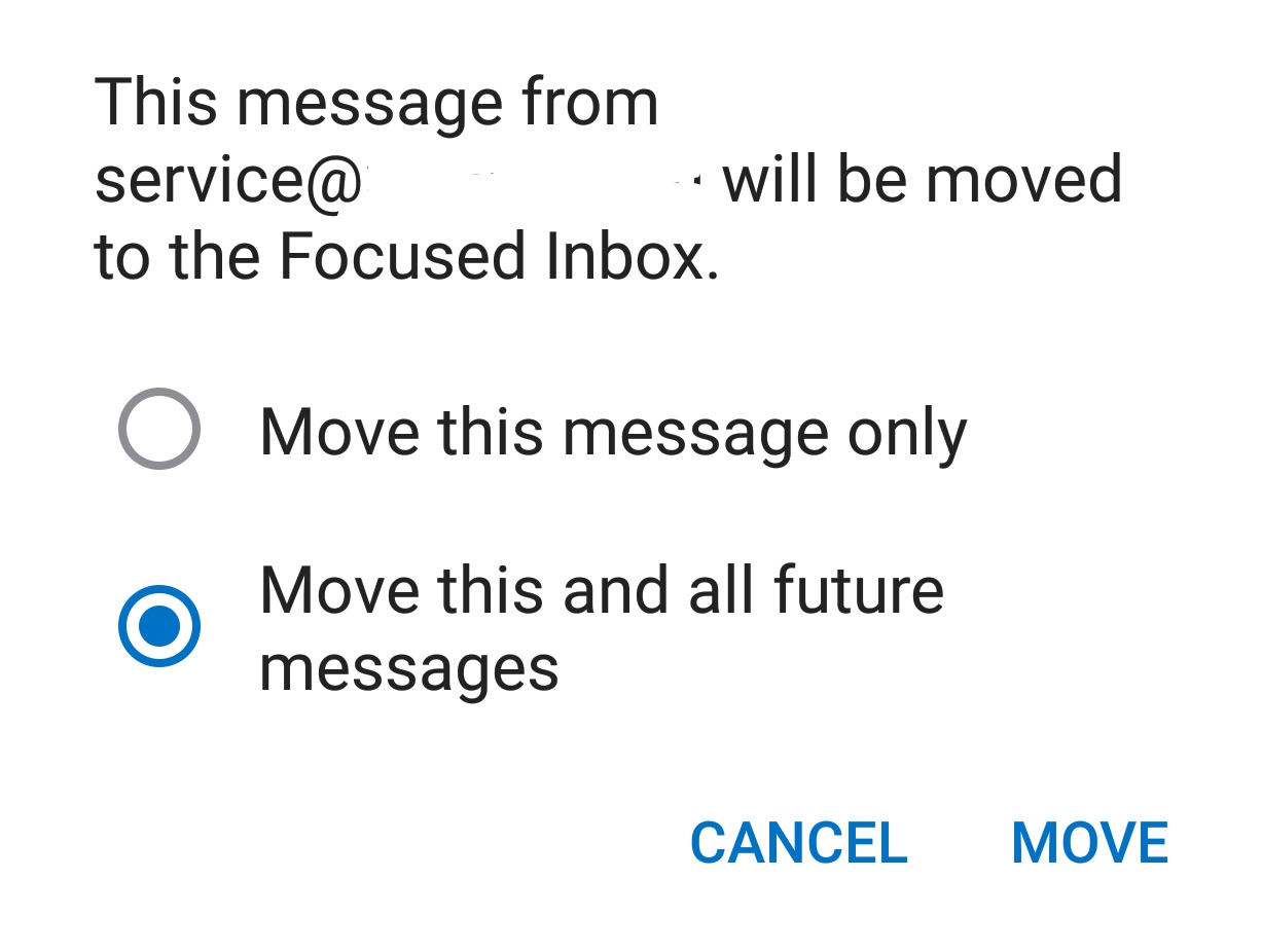 You can also remove unwanted emails from your Focused Inbox as well by repeating this process in your Focused tab.